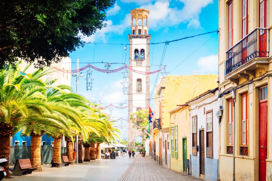 En Tenerife, lejos de la península, San Cristóbal de La Laguna es una ciudad que parece congelada en el tiempo. Llegar aquí implica volar hasta Tenerife, pero una vez en la isla, la ciudad es fácilmente accesible. Con su trazado urbano colonial y sus coloridas casas, pasear por sus calles es como viajar a la época en que las Canarias eran una parada clave en las rutas comerciales del Atlántico.